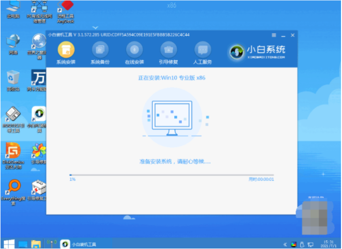 5、电脑进入pe系统后,小白装机工具将会开始安装win10专业版系统,大家耐心等待即可。