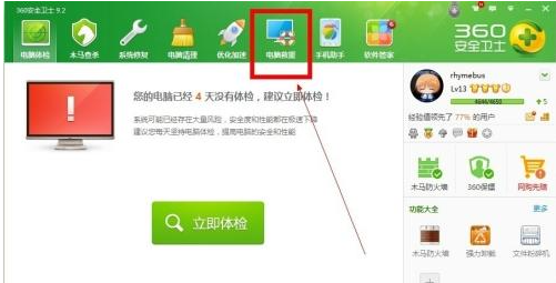 2、如果没有提示的话,也可直接打开360安全卫士,选择“电脑救援”。
