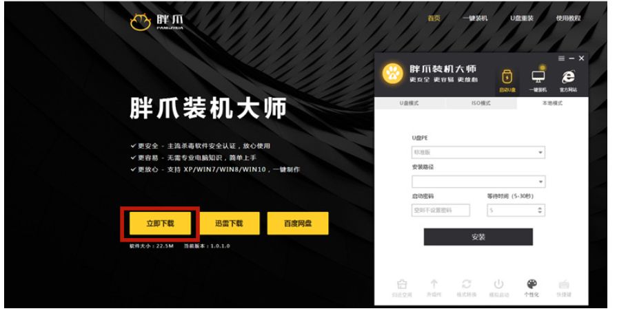 2.之后点击胖爪装机大师主页。下载该软件时请注意关闭电脑上的腾讯管家,360安全管家等软件。