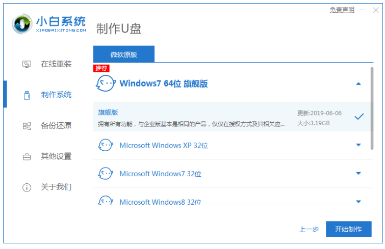 1、电脑重装系统自己怎么做?首先下载安装小白一键重装系统,双击打开软件,选择制作U盘,点击开始制作。