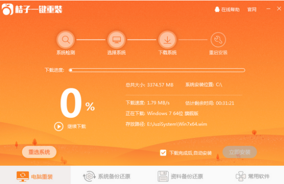 4、下载完成后点击“立即安装”按钮,电脑自动重启并开始安装新系统。