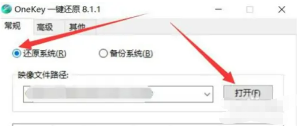 在“常规”版面当中,选中【还原系统】选项,单击“映像文件路径”板块下的【打开】。