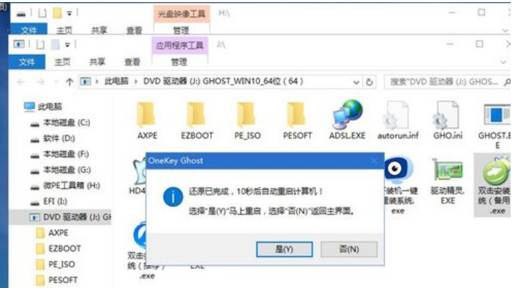 6、出现一键还原窗口时,建议勾选“网卡驱动”以及“USB驱动”复选框,防止重启后出现上不了网或者鼠标用不了的情况,点击“是”并等待重启。
