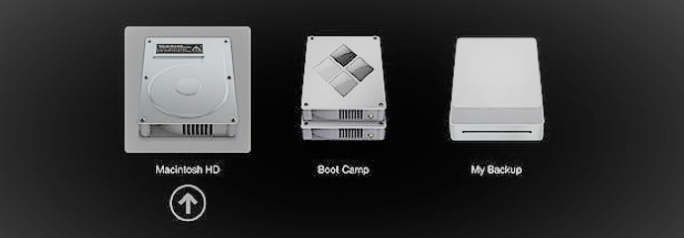 苹果电脑开机过程中按住option键切换选择开机系统进入;
