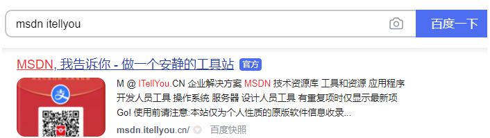 1、首先可以在网上输入搜索“msdn 我告诉你”,然后就可以看到官方的地址,我们点击进入。