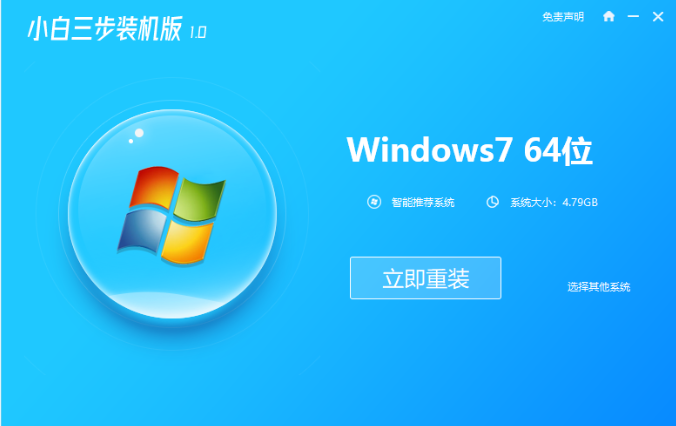 1.电脑怎样重装系统win7?首先我们在桌面上下载小白三步装机版工具,然后打开工具后选择需要安装的win7原版系统,点击立即重装。