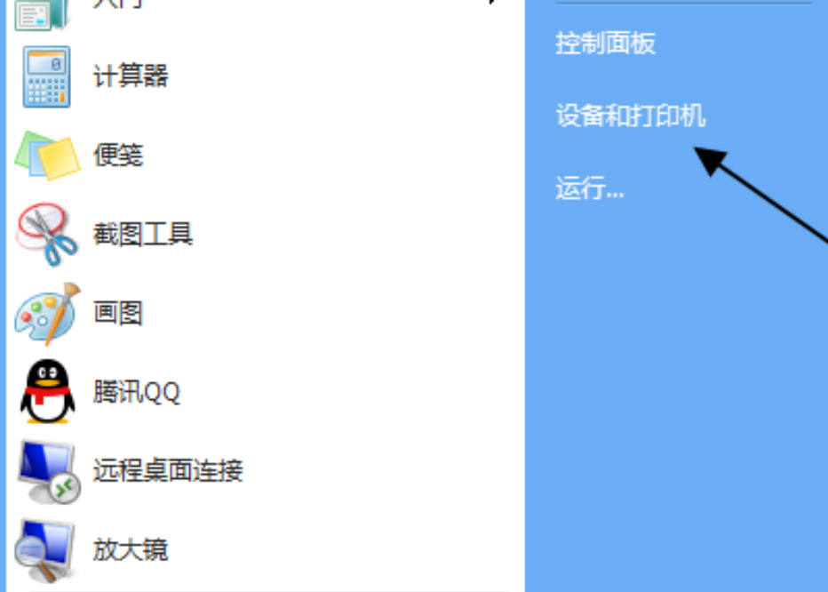 1、首先打开桌面左下角的开始图标按钮,在弹出来的界面中,选择打开“设备和打印机”选项。