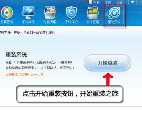 2、再点击‘开始重装’按钮,这时就会弹出金山装机精灵的界面,我们就用这个工具来重装系统。