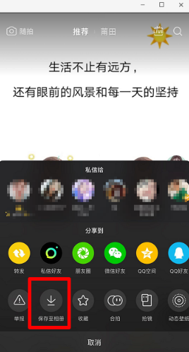 在抖音上刷到想要取图的视频时,点击分享的“右箭头”。