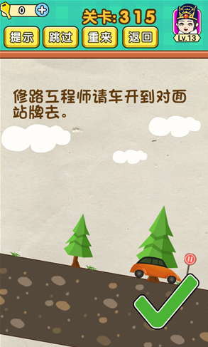 315关答案:先向上拖动地面,然后点击车就过关了。