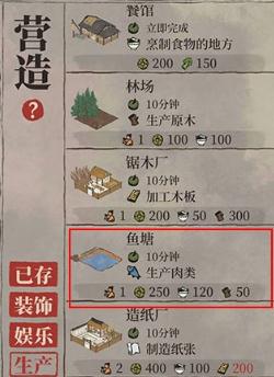 玩家需要在游戏中营造这个鱼塘,就可以生产肉类了。