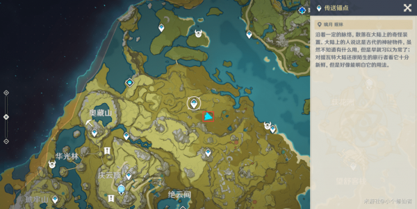 刷新点3:传送锚点传送下来后往地图右侧走即可,在山下,有小怪在一边。