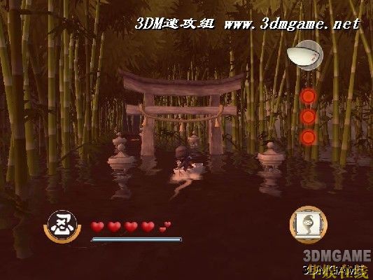 3个柱子.要先上岸.先到最高的柱子处.引诱boss砍倒柱子.