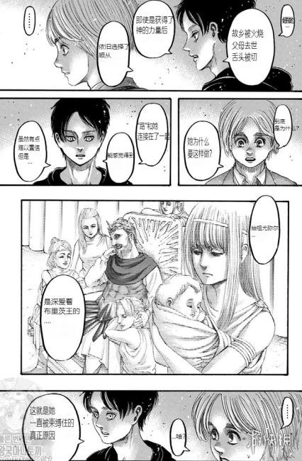 漫画一开始是一段关于艾伦和艾尔敏的剧情,艾伦给艾尔敏看自己的回忆,得知真相的艾尔敏虽然气愤,但还是选择原谅了艾伦。