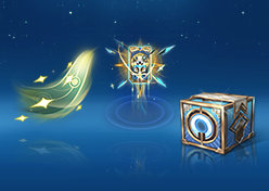 购买礼包必得红蓝对决(1日),可额外随机获得以下之一:命运启示击败、命运征程拖尾、露娜、哥特玫瑰、紫霞仙子、荣耀积分*20、皮肤碎片*2、新品皮肤抽奖券*1。累计150次必得全部局内特效。