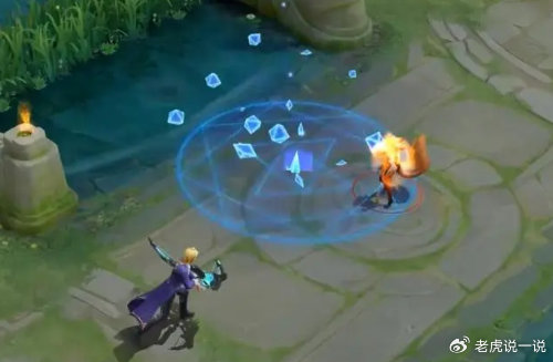 大招的特效改变了形态,原本的技能是一只火鸟,煽动着翅膀向前飞行,而这款皮肤的大招变成了类似两块三角板的造型,路径中还有三角形的通道效果。