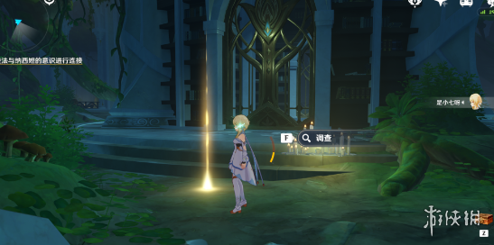 6.设法与纳西妲的意识进行连接,连接点在外圈,树根旁边有个调查点,绕着外圈跑靠近就能看到(图中所示是内圈)