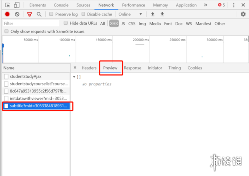 4、然后按F5或Ctrl+R 刷新页面,此时框出的第一个选项为视频(通常为数字加字母),第二个为字幕(subtitle?mid=***,如果视频有字幕的话)。
