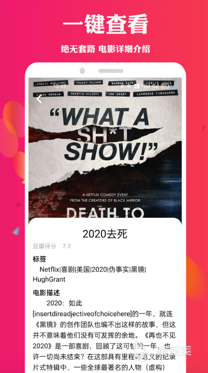 这是一款喜欢看电影的用户一定不能错过的app,内部除了为用户提供大量影视在线观看以外,便捷的分类功能还可以找到更多指定内容,应用内还有更多功能等待着大家去体验。