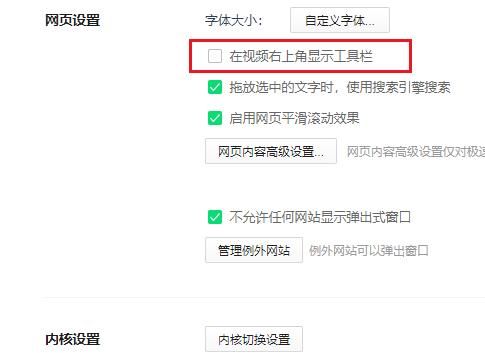 勾选【在视频右上角显示工具栏】。