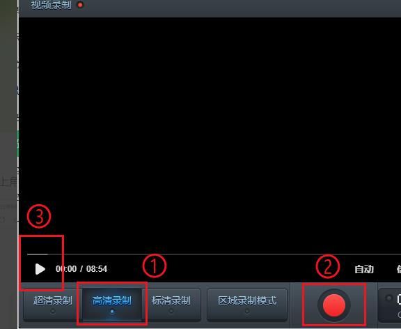 选择录制视频的清晰度,例如“高清录制”;