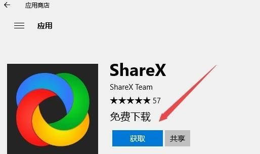 3、在打开的应用商店中我们输入关键词sharex,然后在搜索结果中点击sharex的图标;