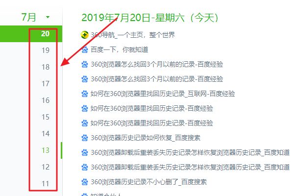 3、最后点击左边的日期就可以进行恢复记录,这样恢复360浏览器历史记录的问题就解决了。