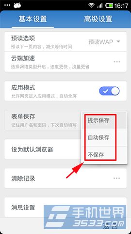 3、表单保存总有三种方案供选择,一是提示保存,二是自动保存,三是不保存。你可根据你实际的需要进行设置。退出到网址时即有设置保存成功的字样出现。(如下图所示)