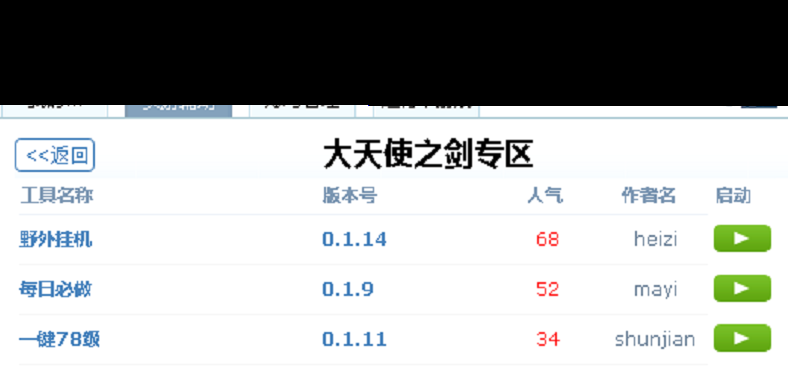第三:点击游戏专区(如:大天使),选择您需要的辅助,点击绿色的“启动”按钮