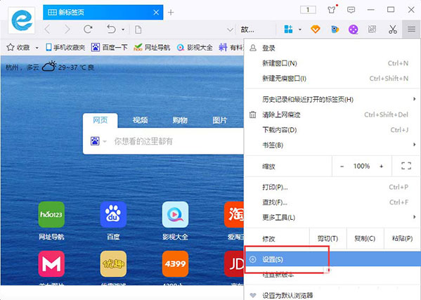 4、点击设置选项后,这个时候会跳转到浏览器设置页面