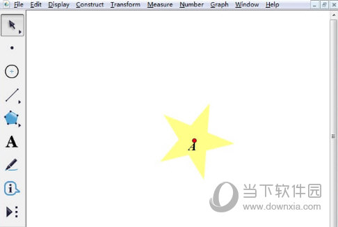 5.用“选择”工具单击五条线段的交点处,定义交点。接着用“选择”工具依次选取点,单击菜单栏“构造”——“多边形内部”,填充出一个黄色的五角星。