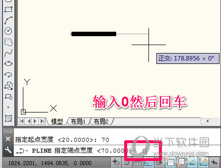 这里输入起点宽度70然后回车(因为箭头开始是比直线宽许多的)。