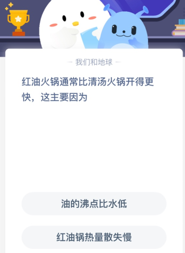 支付宝庄园小课堂12月8日的问题是,红油火锅通常比清汤火锅开得更快。要因为?如果你不清楚,可以看看文中的介绍。
