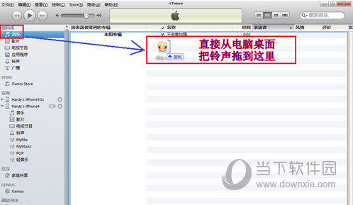 点选资料库音乐 - 在桌面直接将铃声拖入音乐栏目。