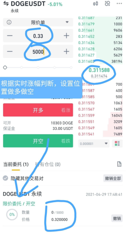 当实时价位低于你的买入价格,你即时盈利,当高于你买入价格时,你亏损,依旧是注意平仓价格,突然的暴涨会直接接近你的强平,可以补仓拉升强平位置,也可直接一键平仓亏。
