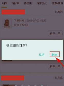 4、等完成上述操作以后,确定删除订单。