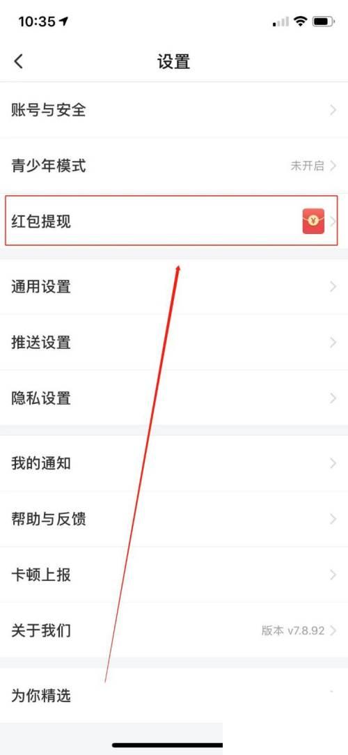 5、步骤五:在设置界面点击“红包提现”进入即可。