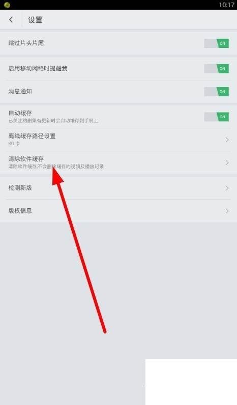 7、然后,就会出现设置的界面,这里我们找到清除软件缓存,点一下!