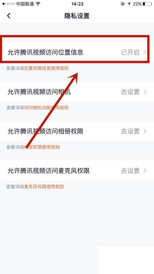 5、在隐私设置页面,点击并进入允许腾讯视频访问位置信息。