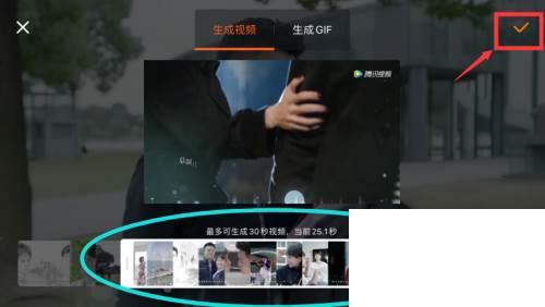 2、点击视频右侧的GIF图标,拖动底部的滑块,选择录制的时长,最长30秒,点击右上角“√”符号