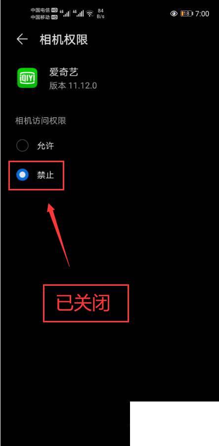 7、点击关闭相机权限按钮(图片中圈红的部分)
