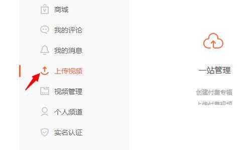 4、进入之后,点击左侧工具栏中的”上传视频“;