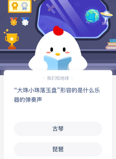 今天的问题是:“大珠小珠落玉盘”形容的是什么乐器的弹奏声?