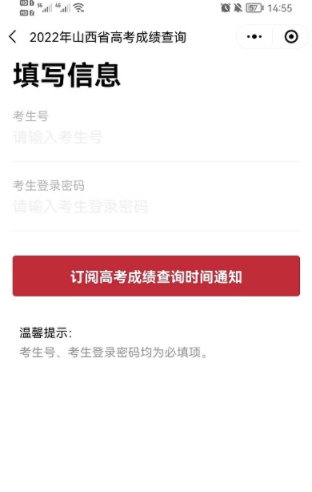 4、最后输入自己的考生号、考生登录密码就可以订阅高考出分查询时间,届时可以查高考成绩时就可以通知学生进行查询。