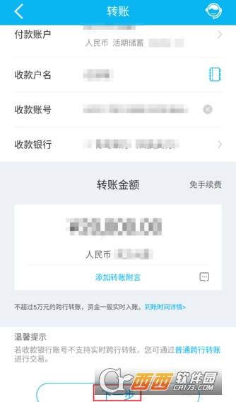 输入转账金额,点击确定。注意:输入转账金额后会自动出现中文大写金额,以防输错金额。