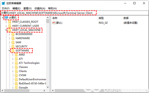 步骤2. 计算机 > HKEY_LOCAL_MACHINE > SOFTWARE > Microsoft > Terminal Server Client